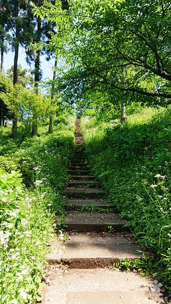 (2/9)少し登ると、まるで踊るように見える木々の緑はみずみずしい生命力に満ちています。あたりの梢には鳥が遊び、鶯(うぐいす)の鳴き声がいたるところから聞こえてきます。空気は透き通るように澄んでいます。