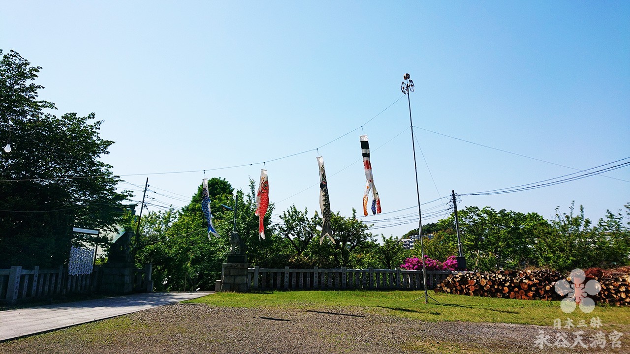 (9/9)明日の端午の節句にそなえて、境内を泳ぐ鯉のぼり一家も泳いだり、休んだり、気ままに過ごしております。