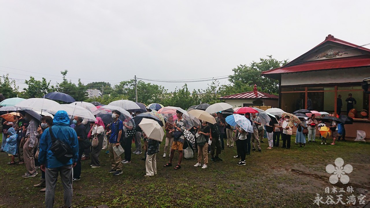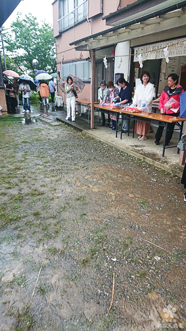 (2/6)雨の降るなか大祓の説明をききながら待機するご参列の方々